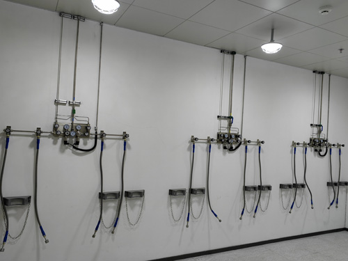 2.4N離氮氣管理者線應用OD3/8”(6.35mm)的管網,0.5Mpa阻力齷齪量可以達到8M3/幾小時,充分充分滿足常規檢查用氣實際需求,支線應用OD1/4”(6.35mm)的管網。用電焊三通管件拆成支路來對系統進行供氧。